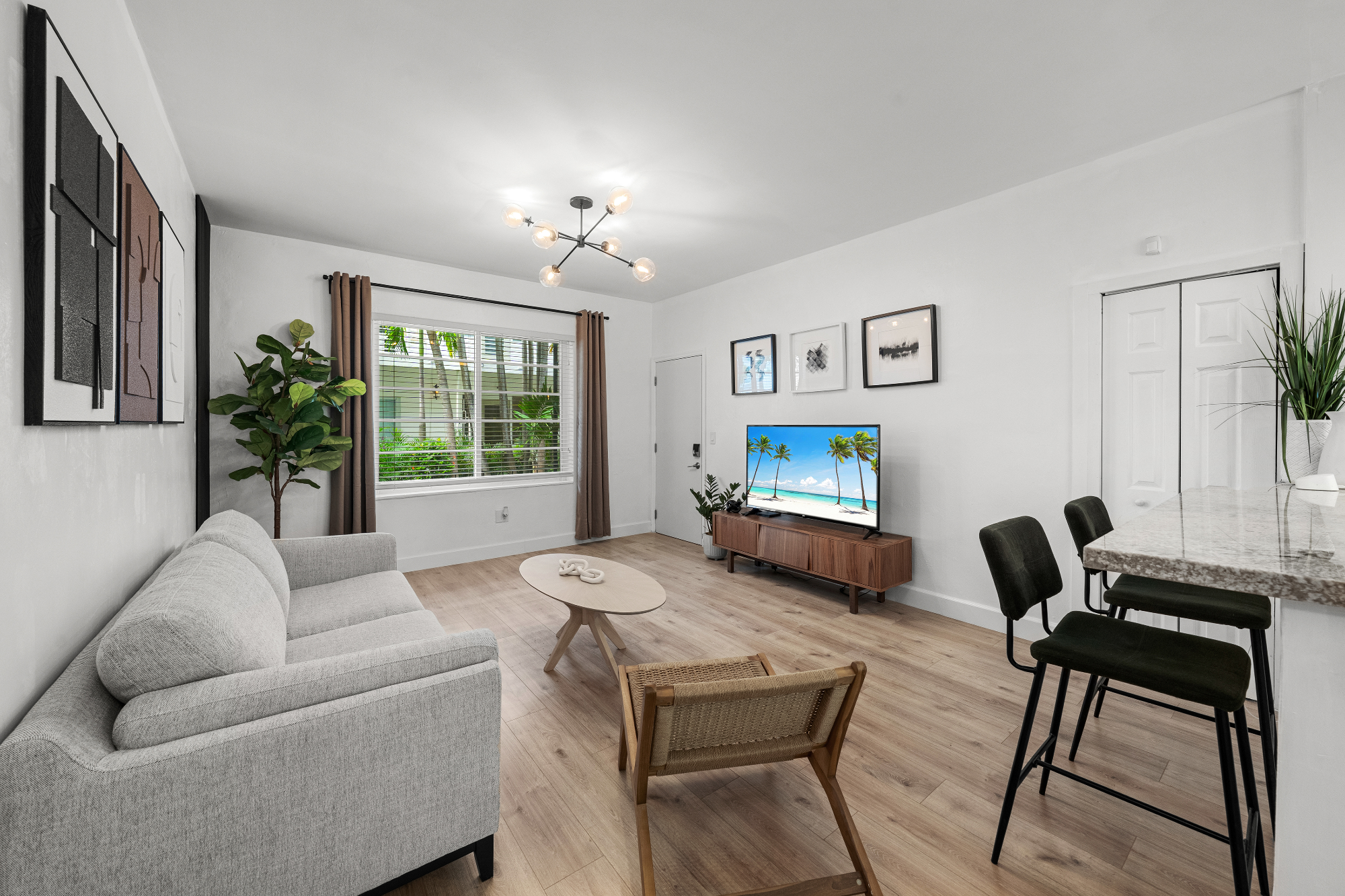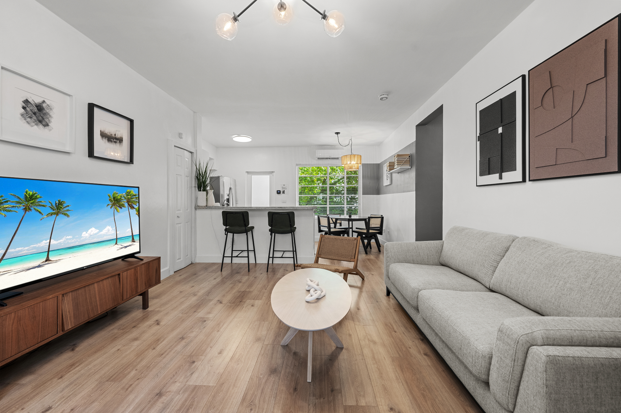 Newly designed 2 bedroom 2 bathroom apartment with 1,000sqft ( 100m2 ) In the heart of South Beach and walking distance to the famous Lincoln Rd. Where you can find some of the finest shops , restaurants and night life that Miami Beach has to offer. Steps away from Biscayne bay board walk with boat docking spaces and jet ski rentals. Walking distance to the New Miami Beach Convention center and the Miami Beach boat show. Netflix and HBO included with High speed internet and WI-FI. Sleeps 5