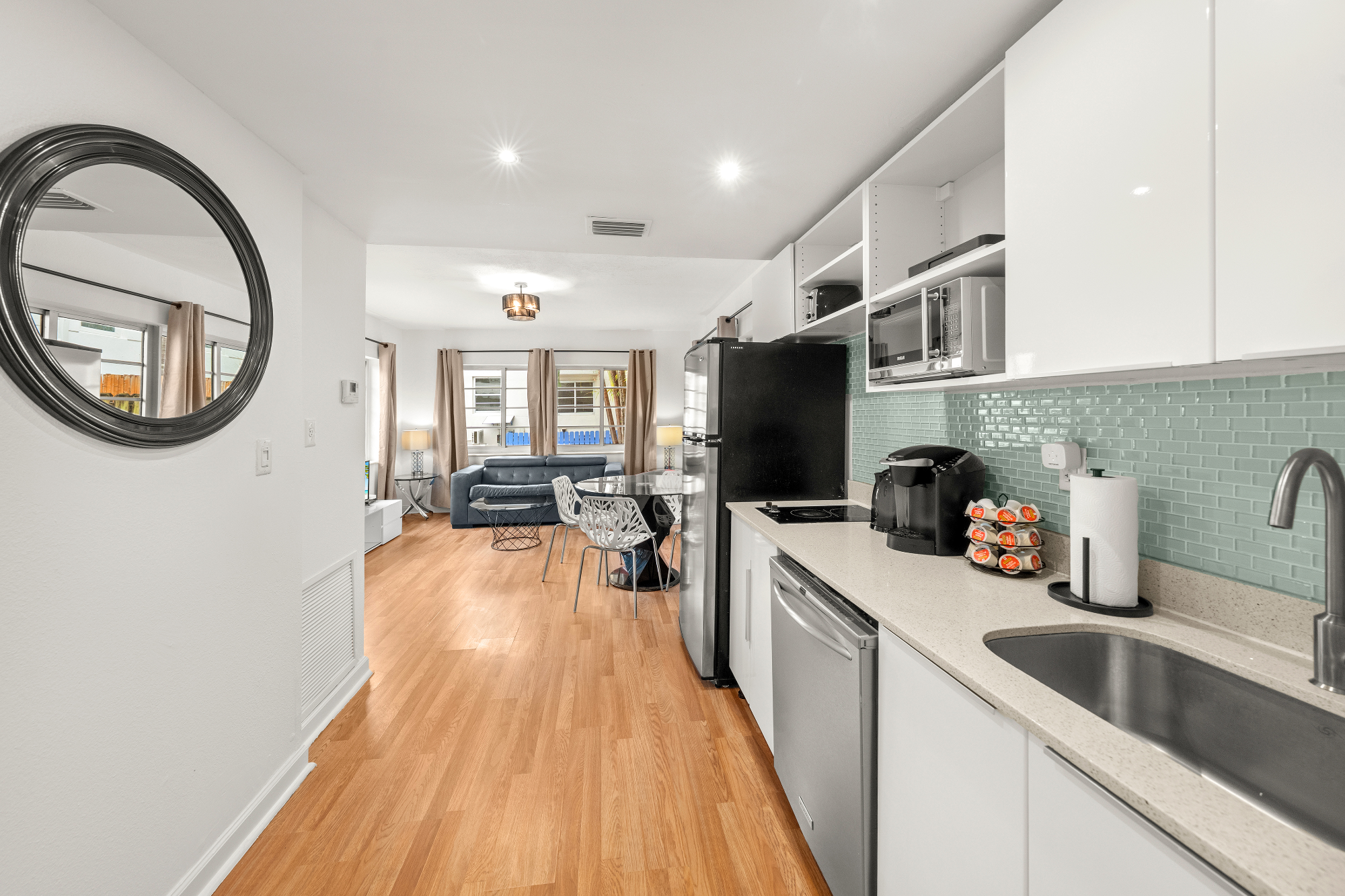 Book with the Benichay Brothers! CASA Caia Suite C features a clean 1 bedroom 1 full bath newly renovated apartment overlooking the pool 600 sqft of living space (60m2) Walking distance to the beach Collins Av, Flamingo Park & many restaurants nearby. Apartment sleeps up to 4 guests comfortably. - Free Wifi - Onsite Pool - Steps from Flamingo Park - Fully Equipped Kitchen w Dishwasher